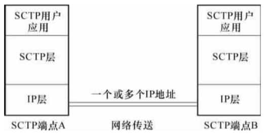 SCTP位于SCTP用户应用和无连接网络层之间,这种无连接的网络可以是IP网络 或者其他的网络。目前SCTP协议主要是运行在IP网络上。SCTP协议通过在两个 SCTP端点间建立的偶联来为两个SCTP用户提供可靠的消息传送业务。