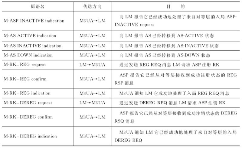 M3UA还有专门的层管理(LM)为其提供管理服务,下面简要说明M3UA与LM的 接口。