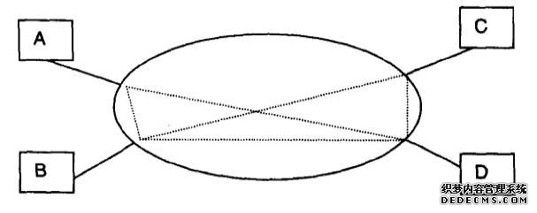 所以面向连接的分组网要求发送端和接收端在信息发送之前,先建立连接。在分组网中,有两种建立连接的方式。首先,可以事先在称为“服务准备”的阶段手工地标注出连接图。也就是说,当一个公司和网络服务供应商进行联系以求连接A、B、C、D四个站点时,就向网络服务供应商递交一份连接关系图。这份图主要告诉网络服务供应商站点之间将要建立哪些连接。并不是所有的顾客都需要或想要把自己的站点与其余的各个站点都连接起来。这样的连接在分组网中称为“永久虚电路”(简称PVC),一个功能较完善的网络如图二所示。